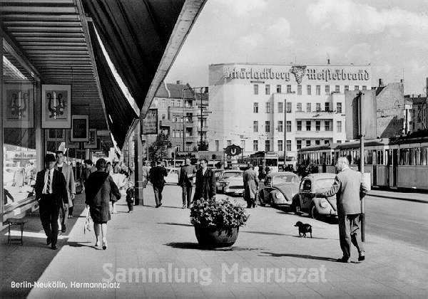 Bürgersteig vor dem Karstadt-Kaufhaus auf der Westseite des Platzes - damals noch schön breit.