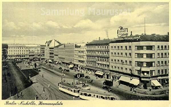 Seltener Blick auf die Ostseite des Hermannplatzes aus den 1930er Jahren (da vorzugsweise das auf der Westseite stehende, hier nur durch den Schlagschatten sichtbare, Warenhaus fotographiert wurde).