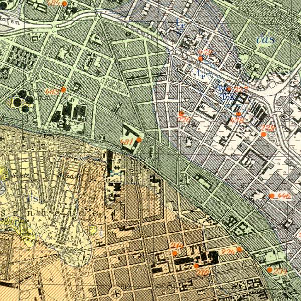 unter Benutzung der Aufnahmen von K. A. Lossen 1879 und G. Berendt 1882 für die bebauten Teile