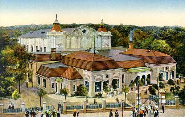 Obwohl die Karte ca. 1925 produziert wurde, ist die Aufnahme schon deutlich älter (ca. 1905). Um die Aufnahme noch verwenden zu können, wurden aus der Originalaufnahme aufwendig die schwarz-weiß-roten Flaggen, die an zahlreichen Stellen das Gebäude schmückten, wegretuschiert.