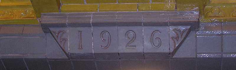 Am Aufgang zum westlichen Zwischengeschoß wurde mit einem Schmuckelement auf Keramik-Fliesen das Baujahr des unteren Bahnsteiges festgehalten. Dieses und ähnliche Schmuckelemente blieben bei der Bahnhofssanierung im Original erhalten und ermöglichen noch heute den Vergleich zwischen originalen und nachgebrannten Fliesen.