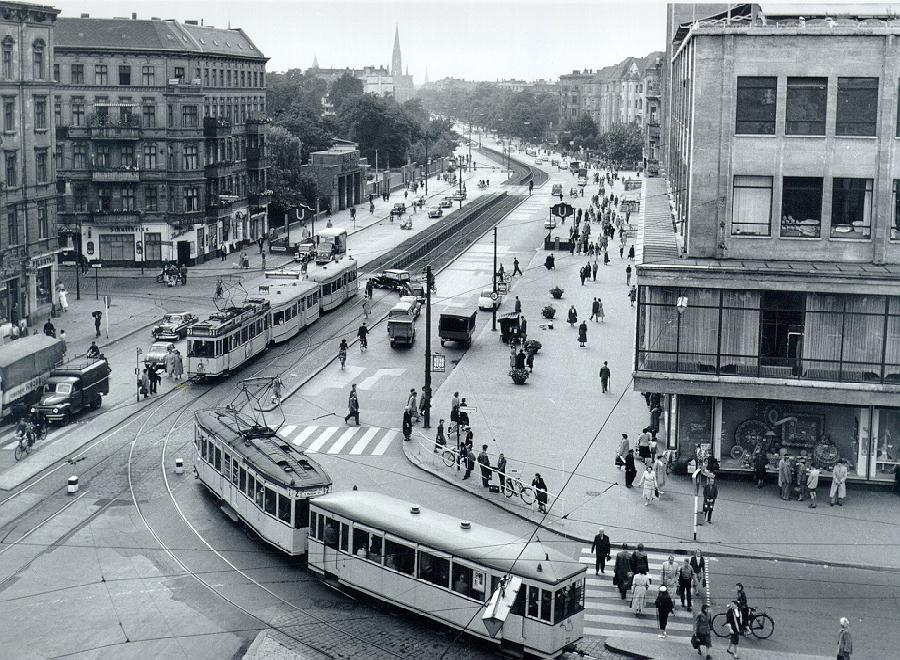 17.08.1956: Noch fahren die Straßenbahnen vom Hermannplatz (rechts) in die Straße