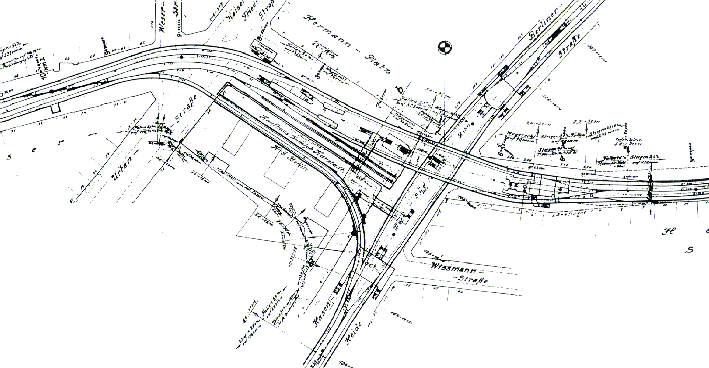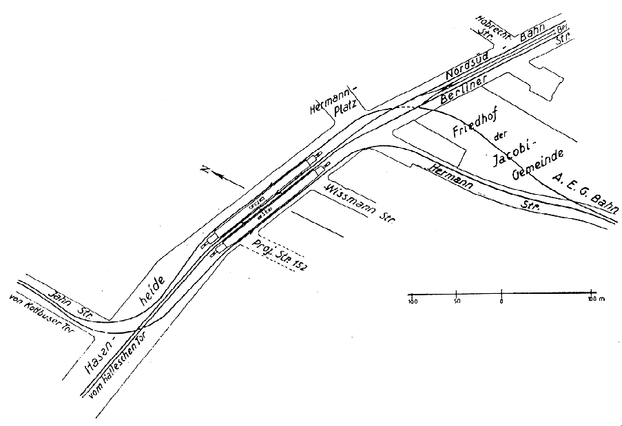 Plan des U-Bahn-Bereichs am Hermannplatz mit den Anfang der 40er Jahre an Stelle der
