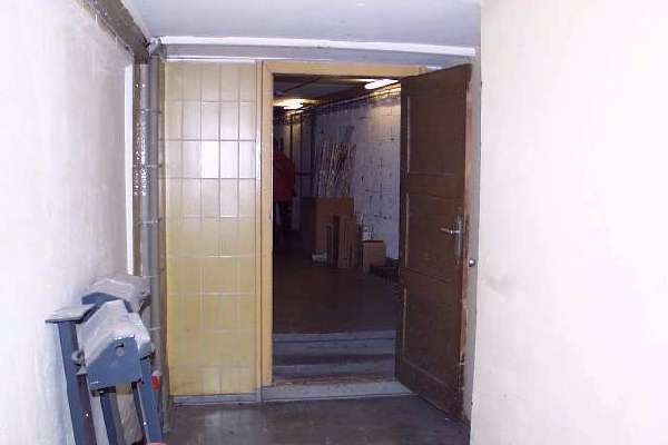 Der oben beschriebene Verbindungsgang endet im westlichen Zwischengeschoß. Nachdem der Gang 1945 seine Funktion verloren hatte, wurde er zugemauert und mit einer Tür versehen.